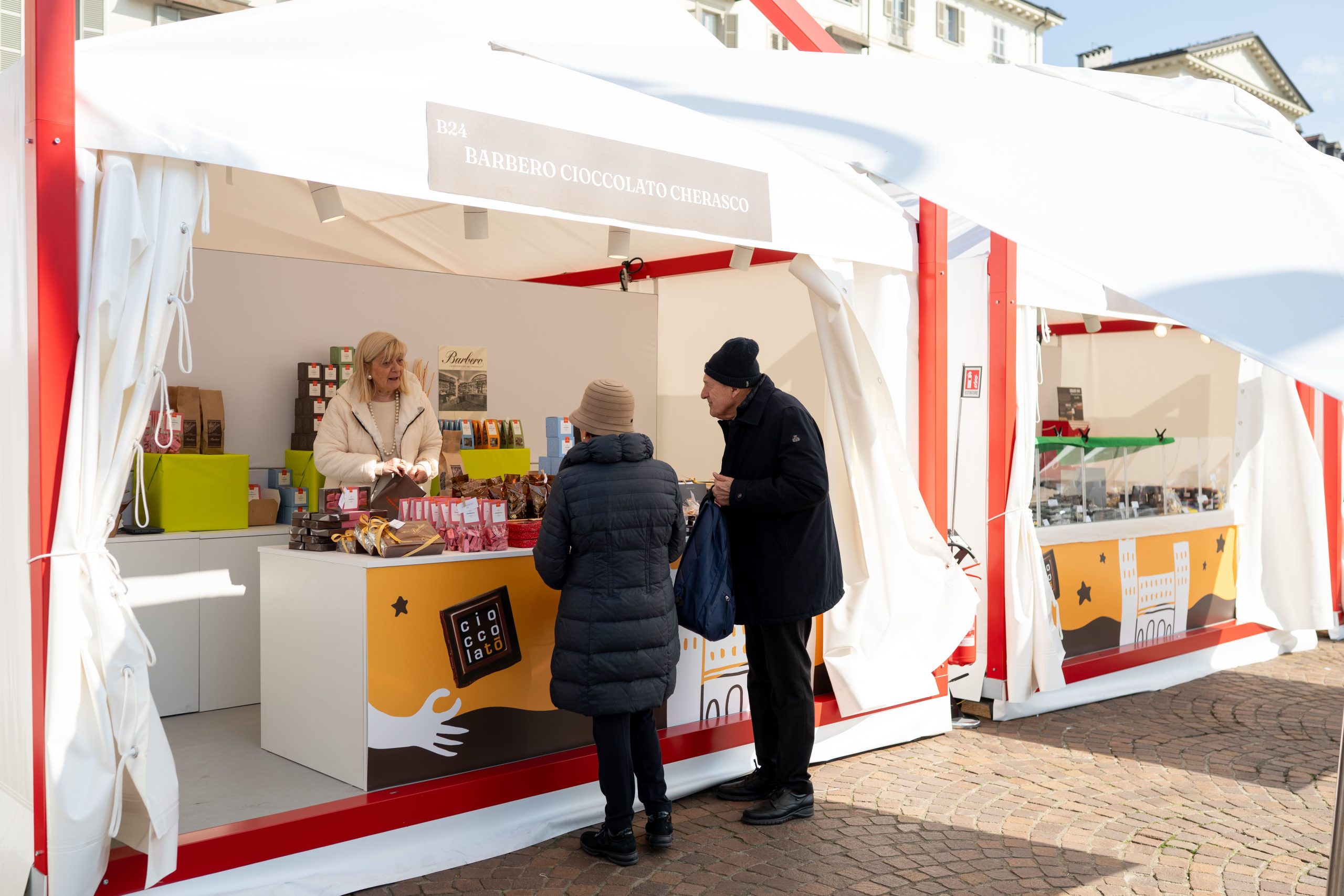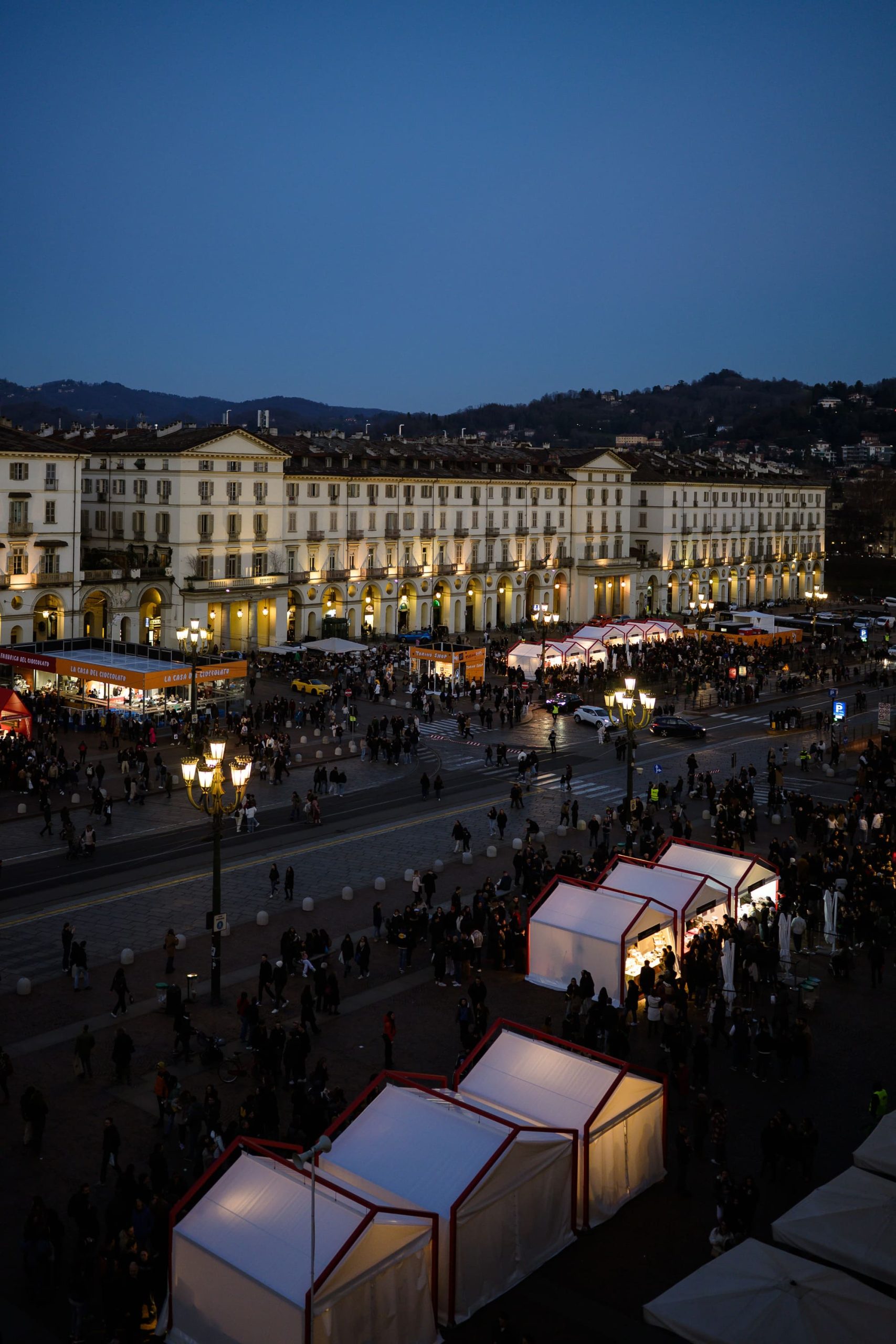 CioccolaTò 2025 ha ospitato circa 50 espositori con 70 stand in Piazza Vittorio Veneto, la più grande piazza di Torino.